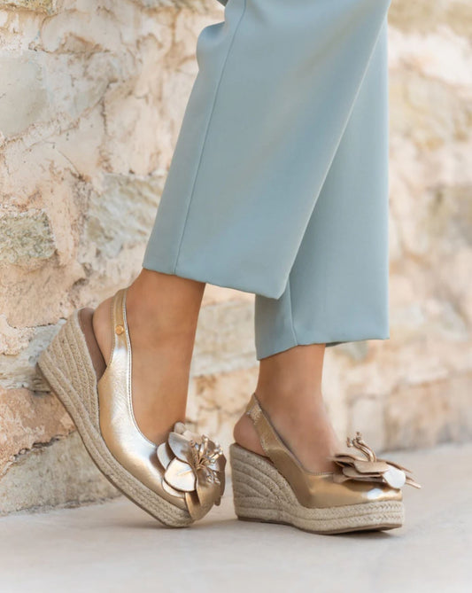 Sandalias alpargatas de cuñas con suela de esparto y detalle floral alpargatas