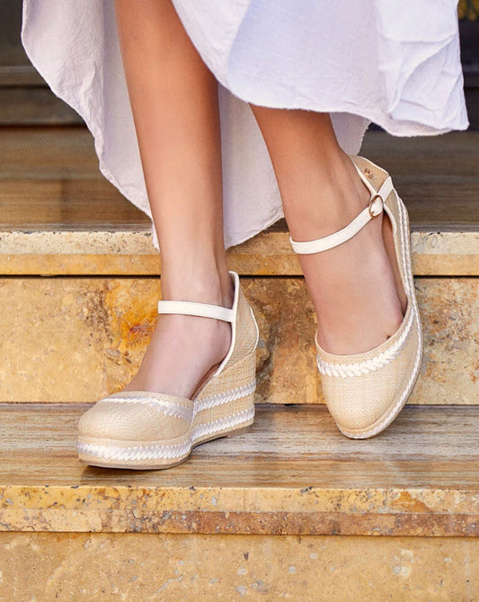 Alpargatas de cuña con pulsera y detalle trenzado, estilo boho chic