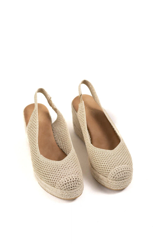 Sandalias de cuñas con tejido calado, suela de yute, estilo slingback y puntera cerrada Sandalias
