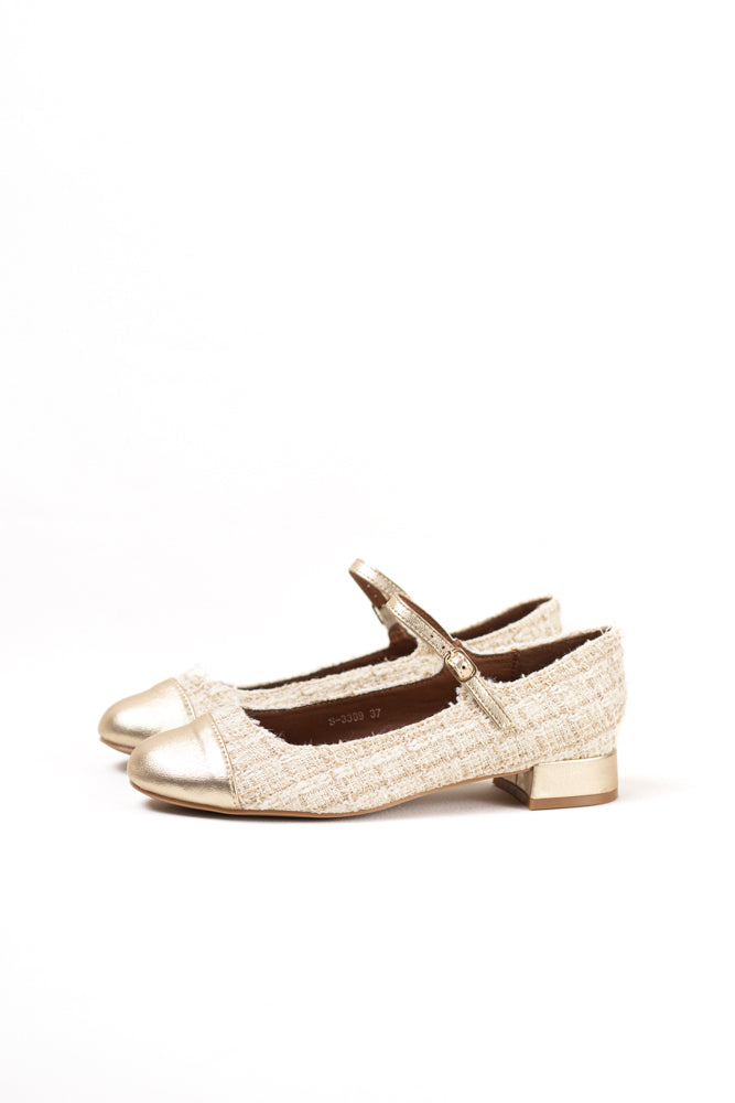 Estas elegantes bailarinas combinan tweed clásico con una puntera negra, ofreciendo un look sofisticado y versátil ideal para la oficina o salidas casuales. Confortables y chic, estas bailarinas son perfectas para la mujer moderna que aprecia tanto estilo como funcionalidad.