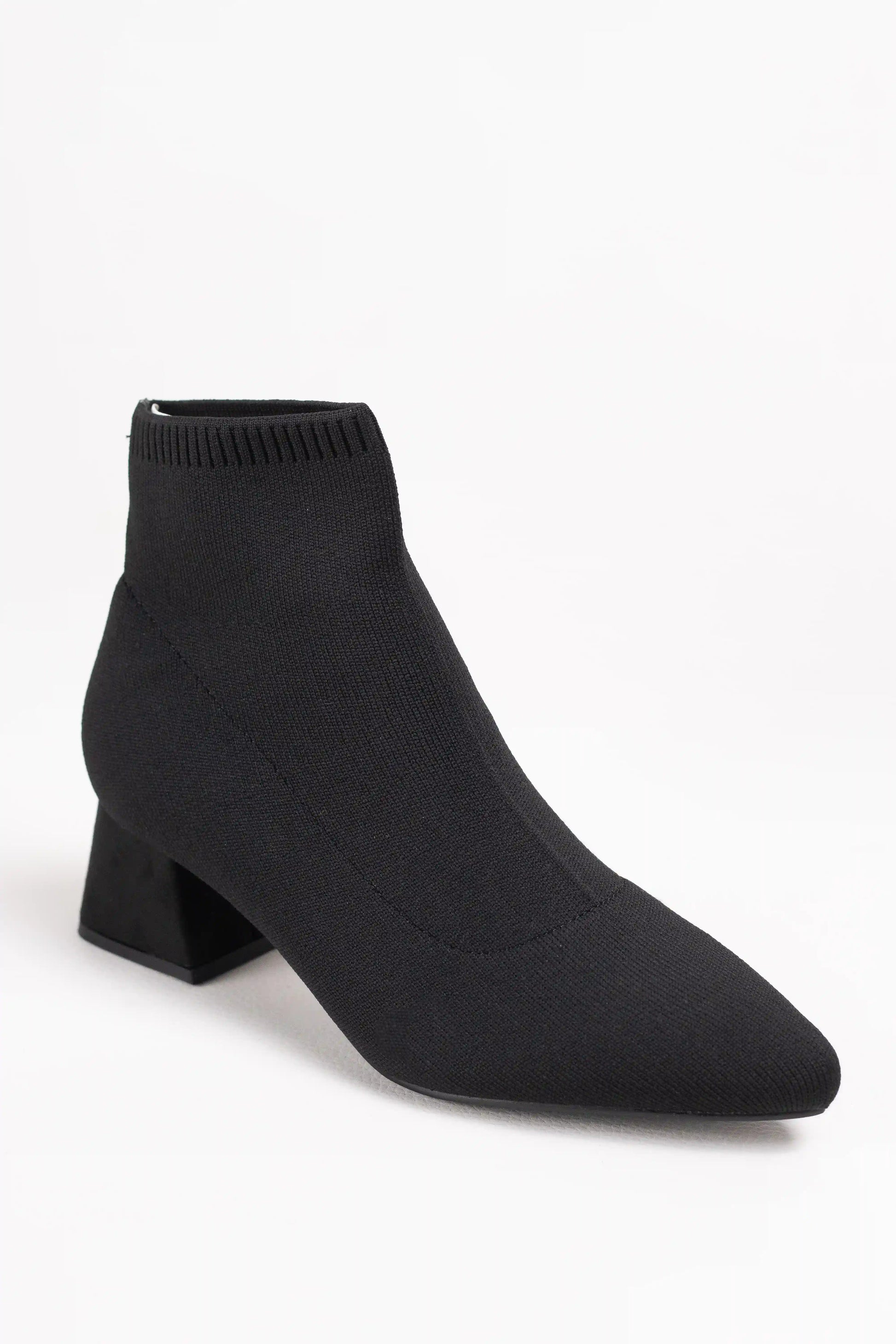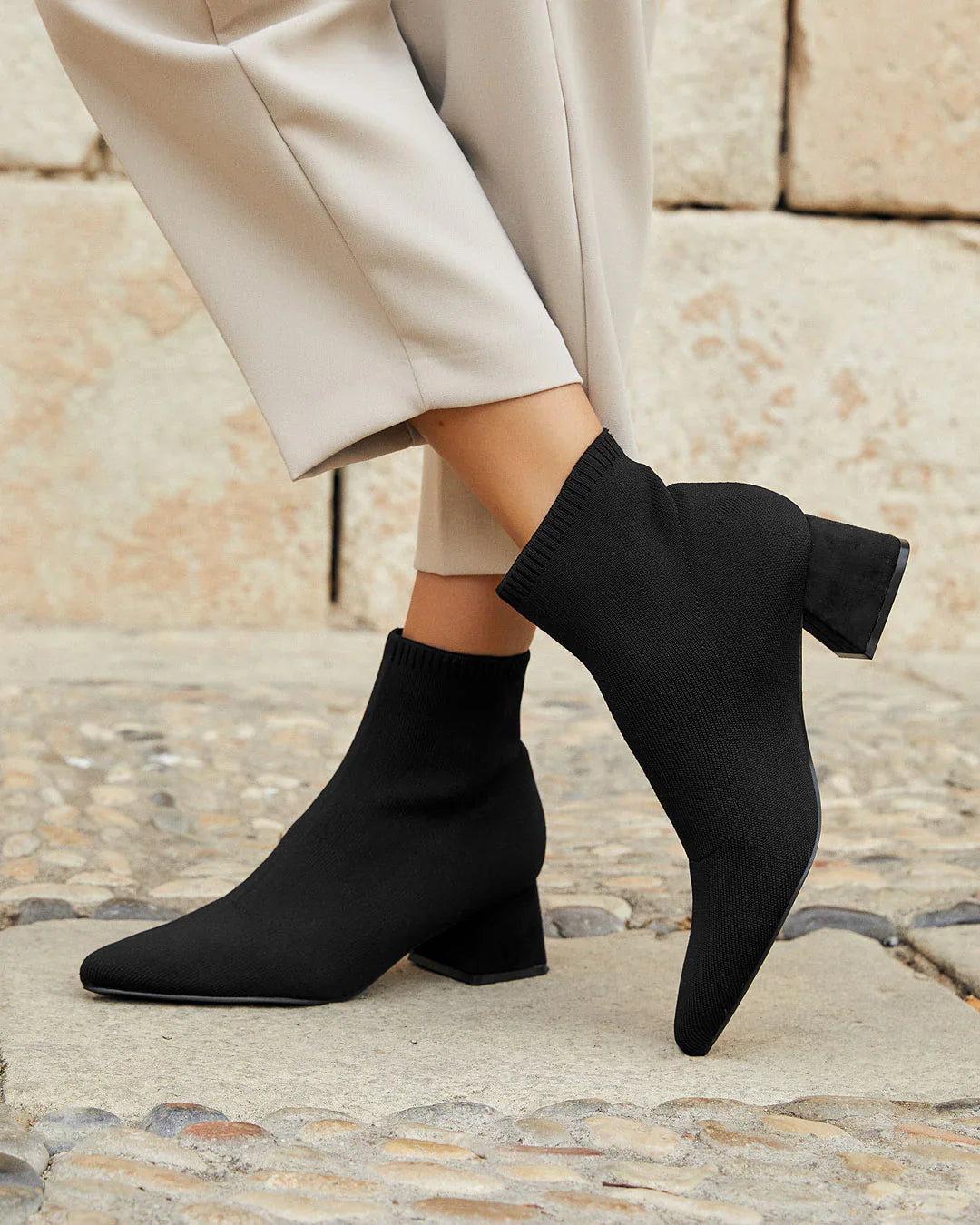Botines calcetín de tejido elástico con punta fina y tacón cuadrado medio
