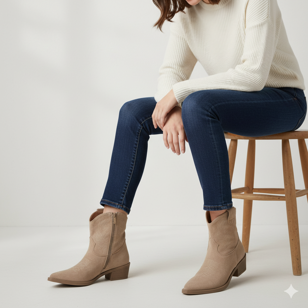 • Estilo: Un diseño clásico cowboy de caña corta, con punta afilada y silueta limpia, ideal para un look country o casual.