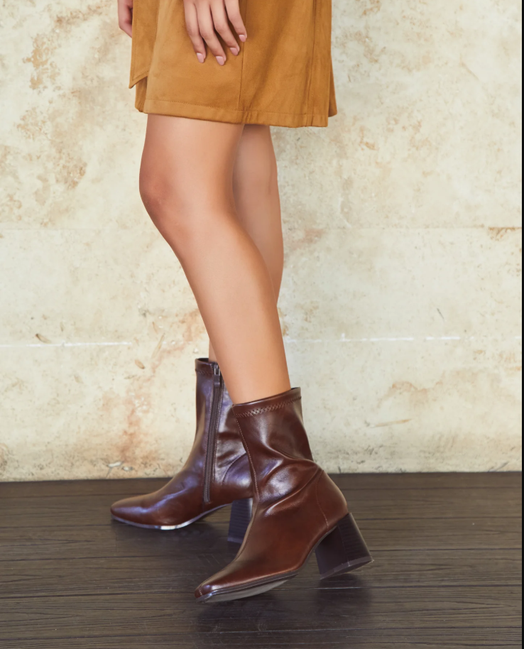 Botines de piel sintética diseñados para un estilo atemporal y elegante. Su caña media se ajusta cómodamente al tobillo, la punta fina aporta sofisticación y el tacón ancho asegura estabilidad y confort en el día a día. Perfectos para combinar con faldas, vestidos o pantalones en cualquier ocasión.