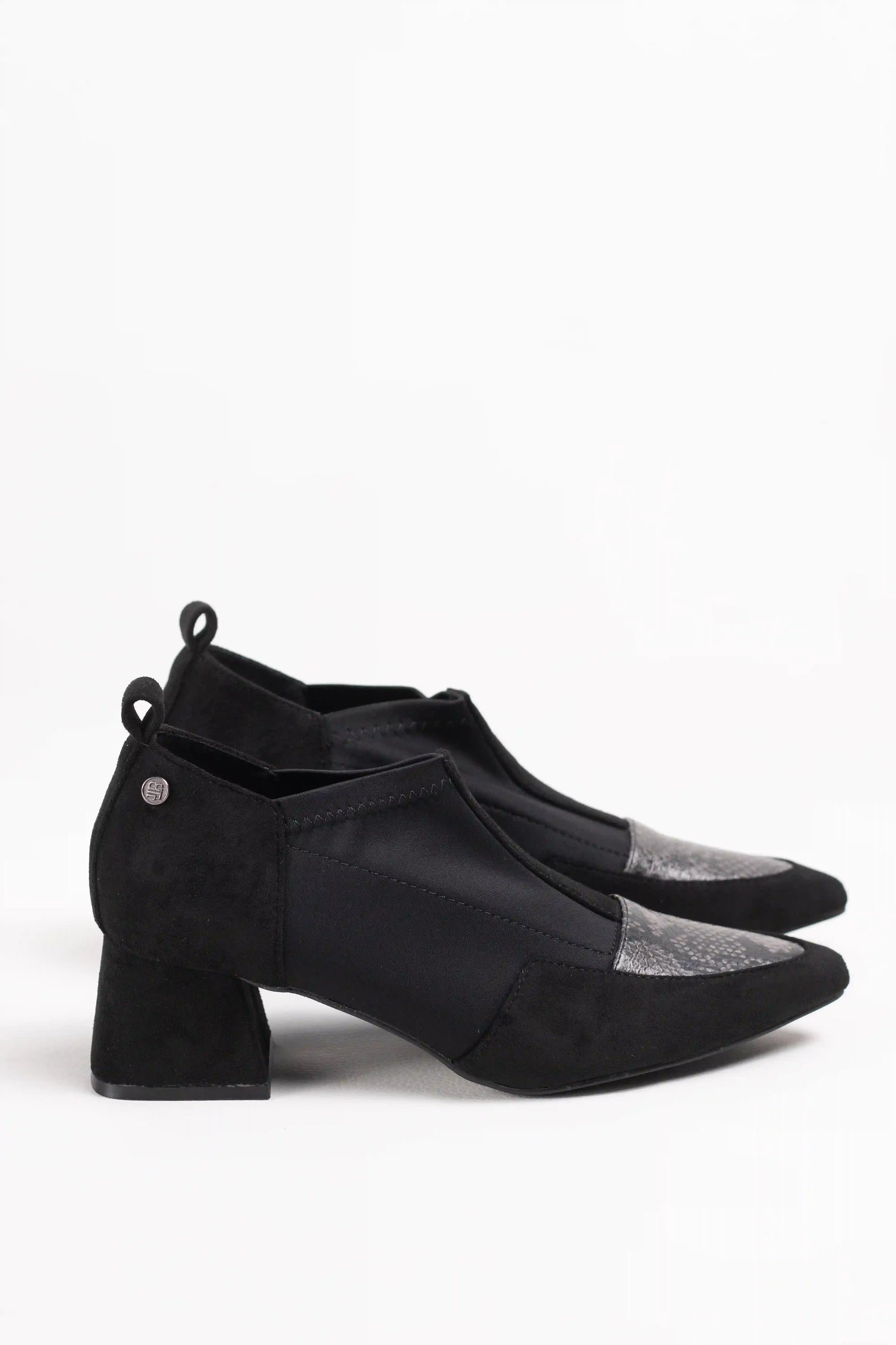 Botines de Tacón Medio con Contraste de Texturas y Punta Afilada