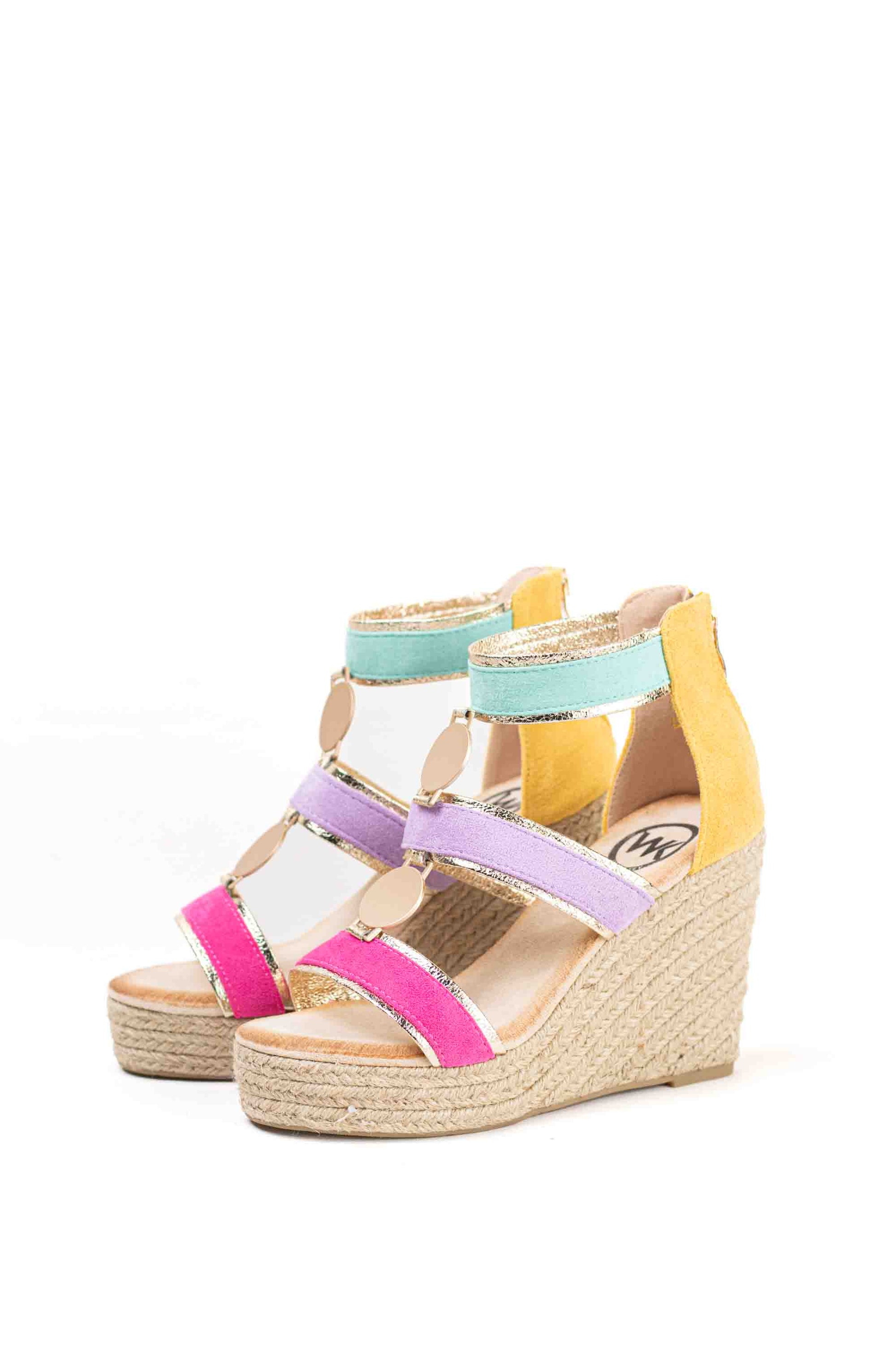 Sandalias cuña alta de esparto con plataforma mujer con cremallera trasera
