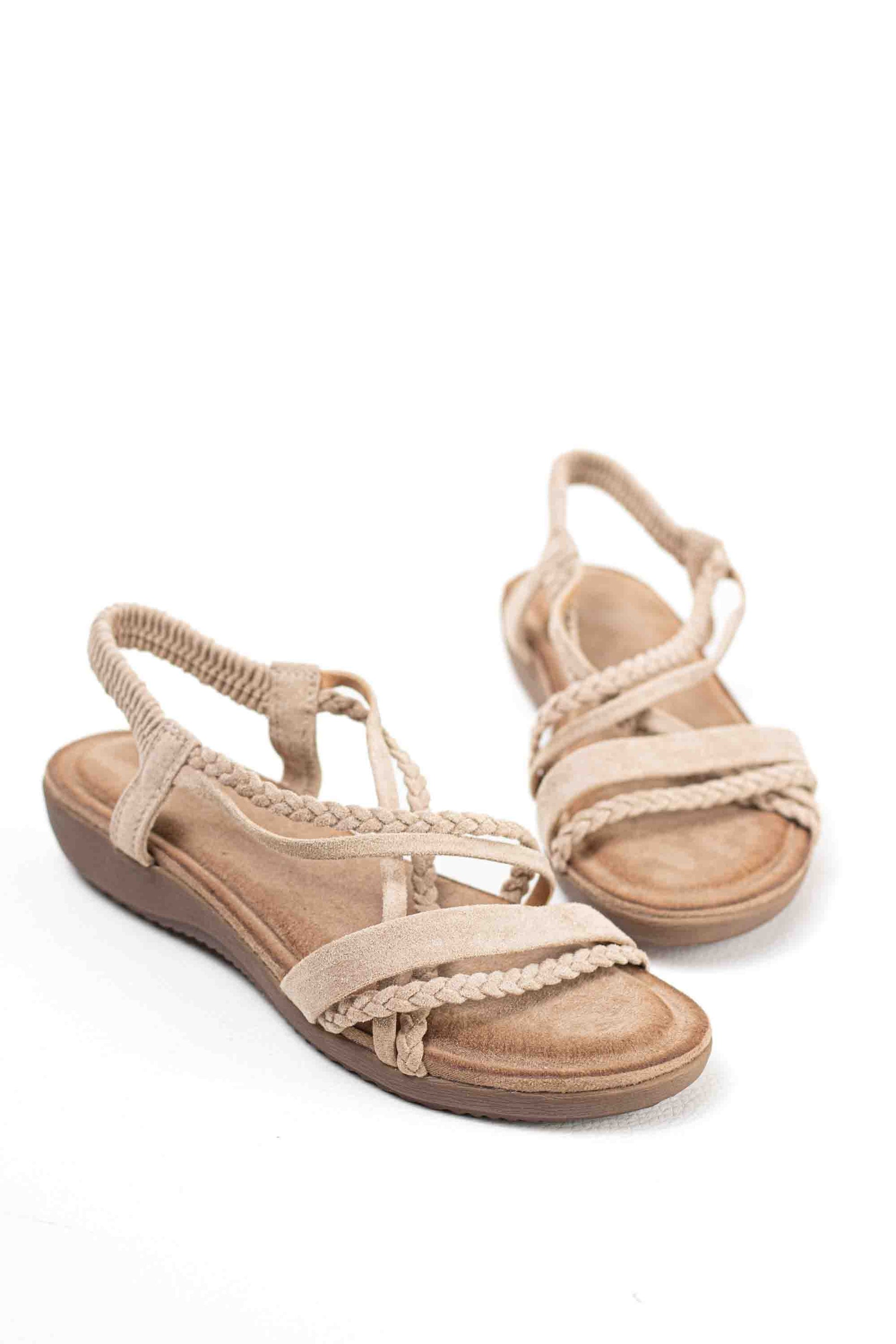 Estas sandalias doradas trenzadas son el complemento ideal para tus looks de verano. Con su diseño que mezcla elegancia y comodidad, podrás caminar durante horas sin sacrificar estilo. Perfectas para combinar con vestidos o pantalones, serán tus aliadas en cada paso.