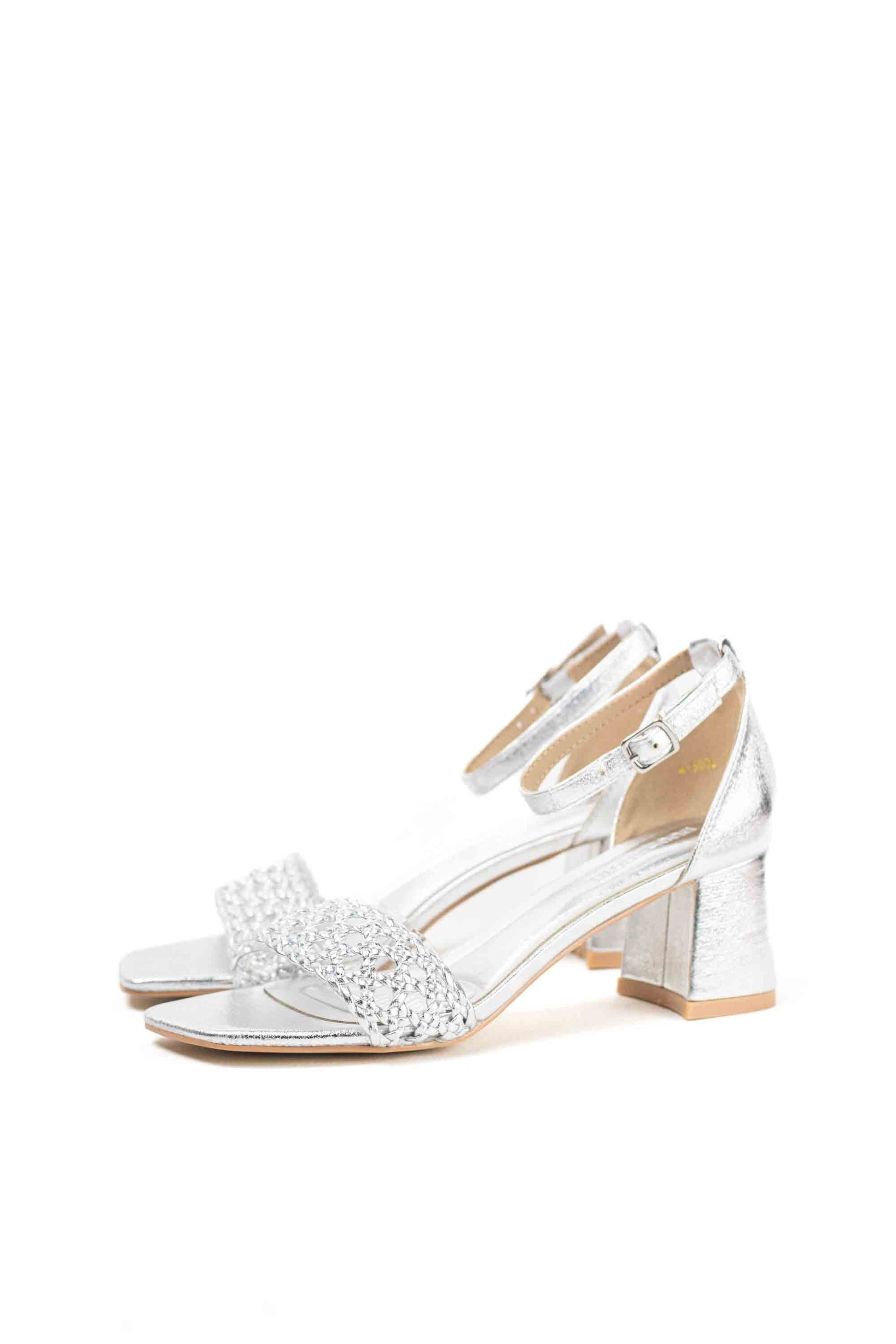 Sandalias doradas mujer tacón medio par vestir con diseño trenzado