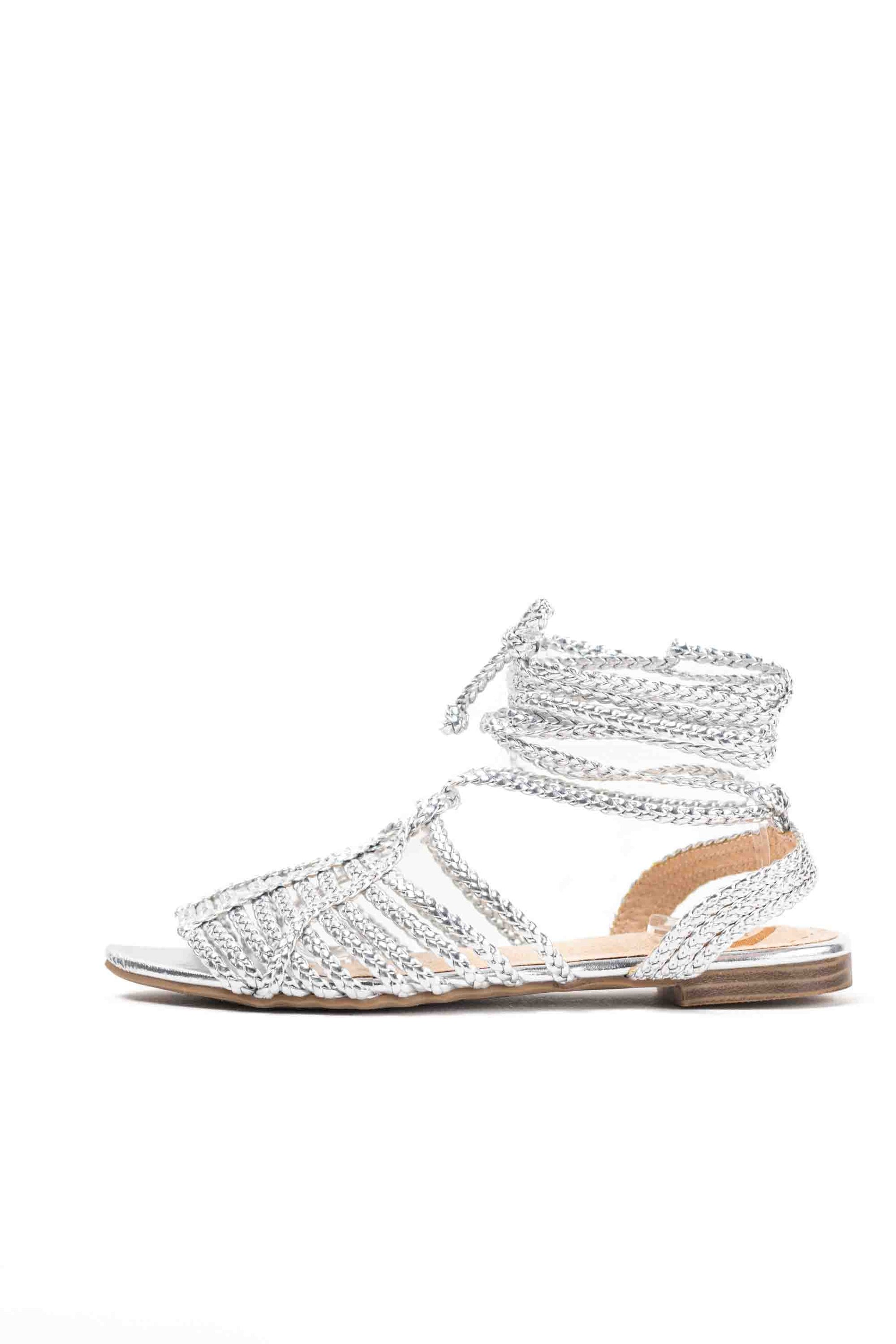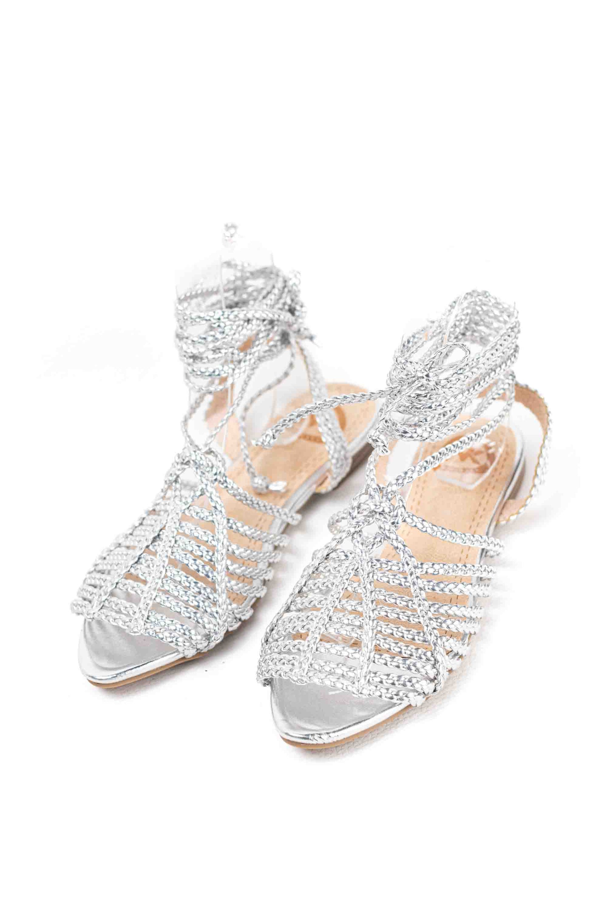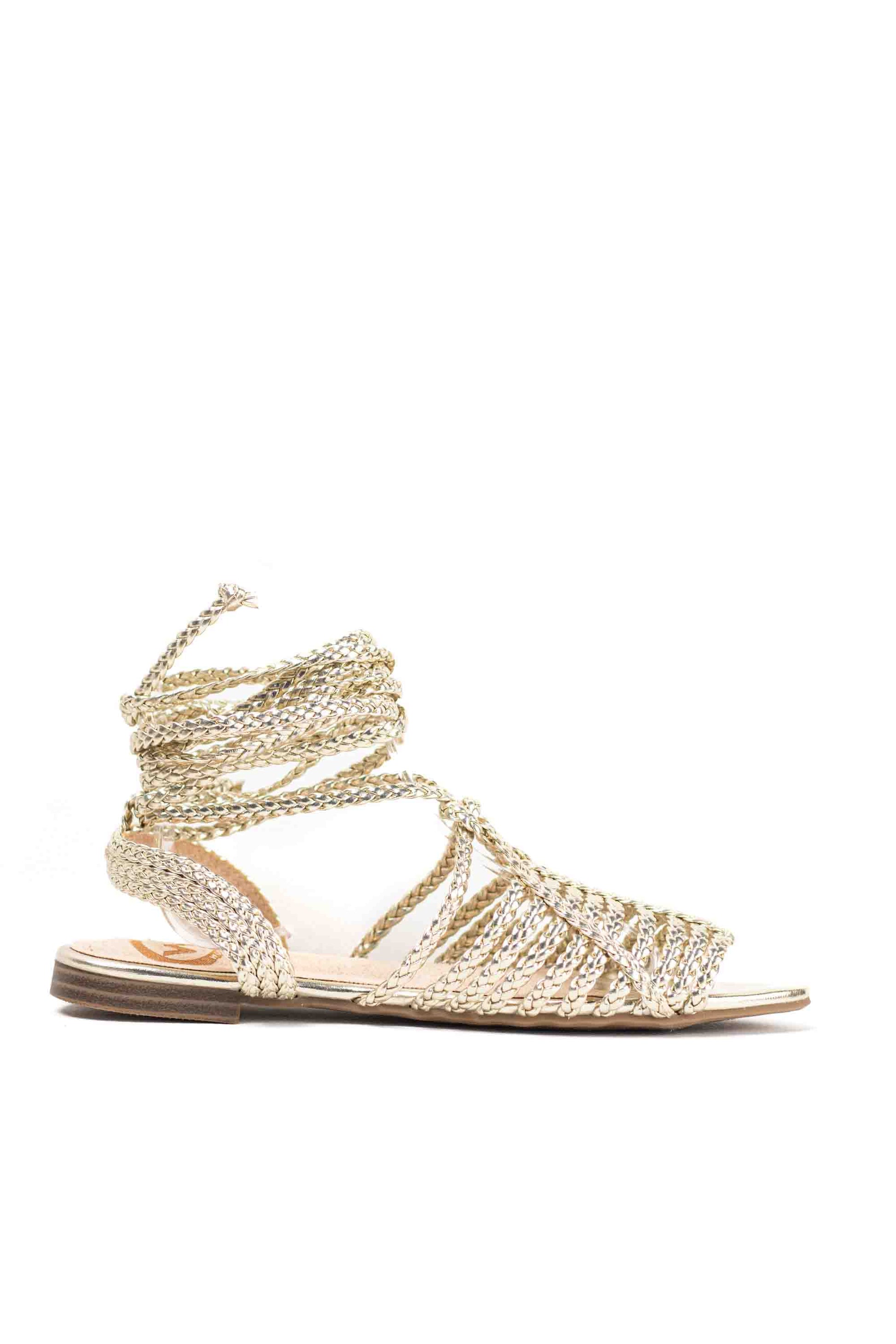 Sandalias doradas tiras trenzadas con cintas para mujer con suela plana