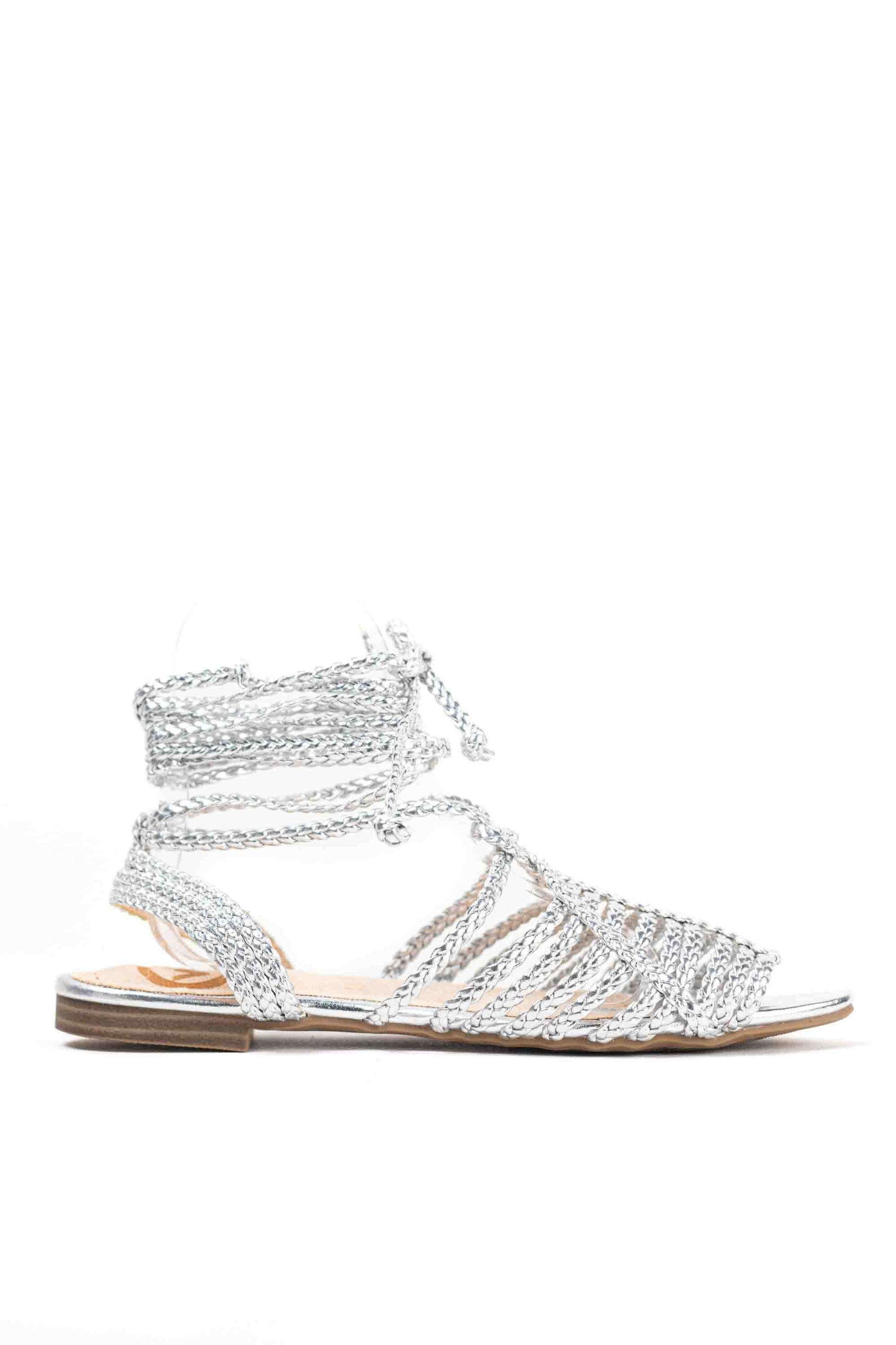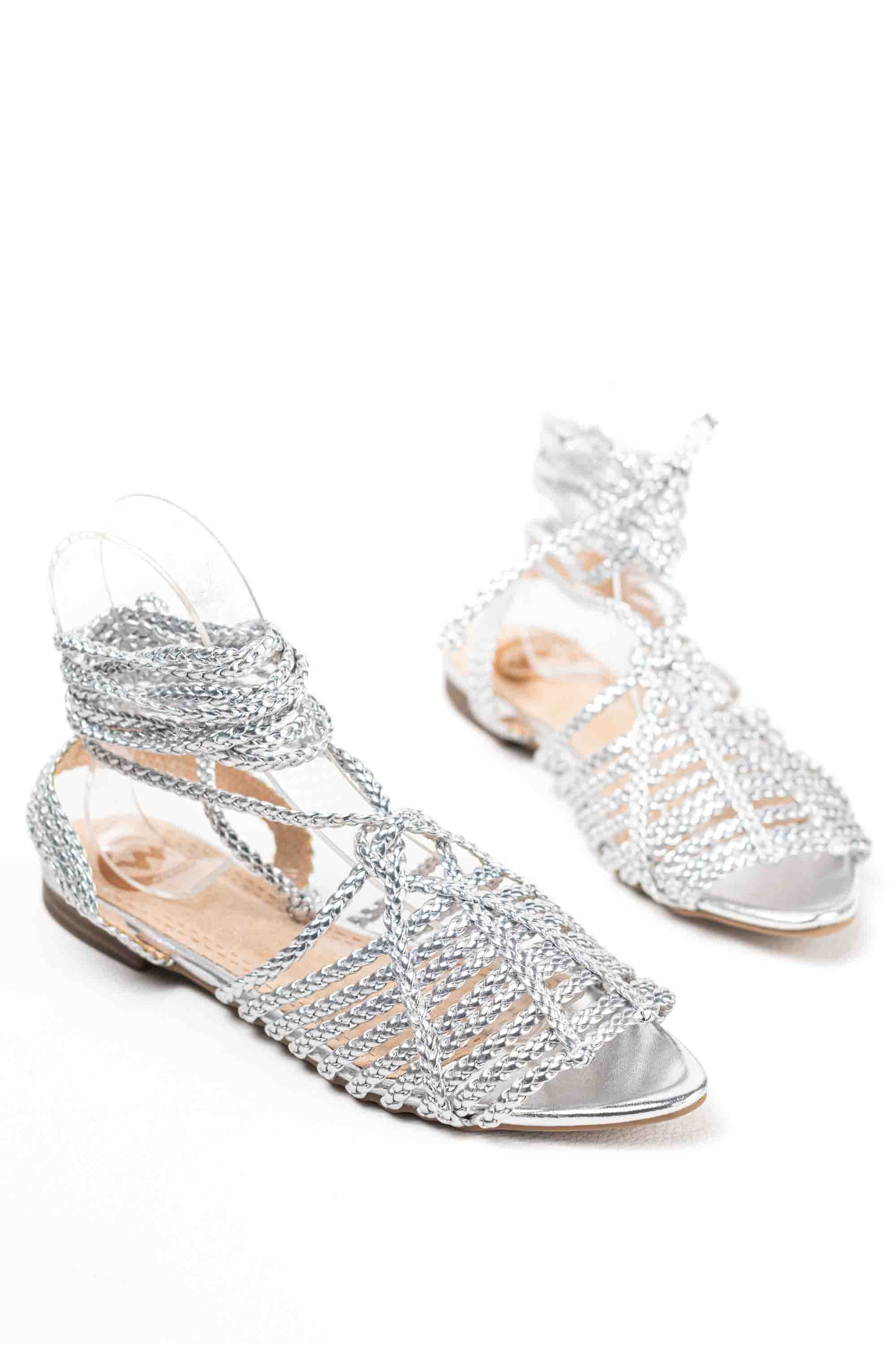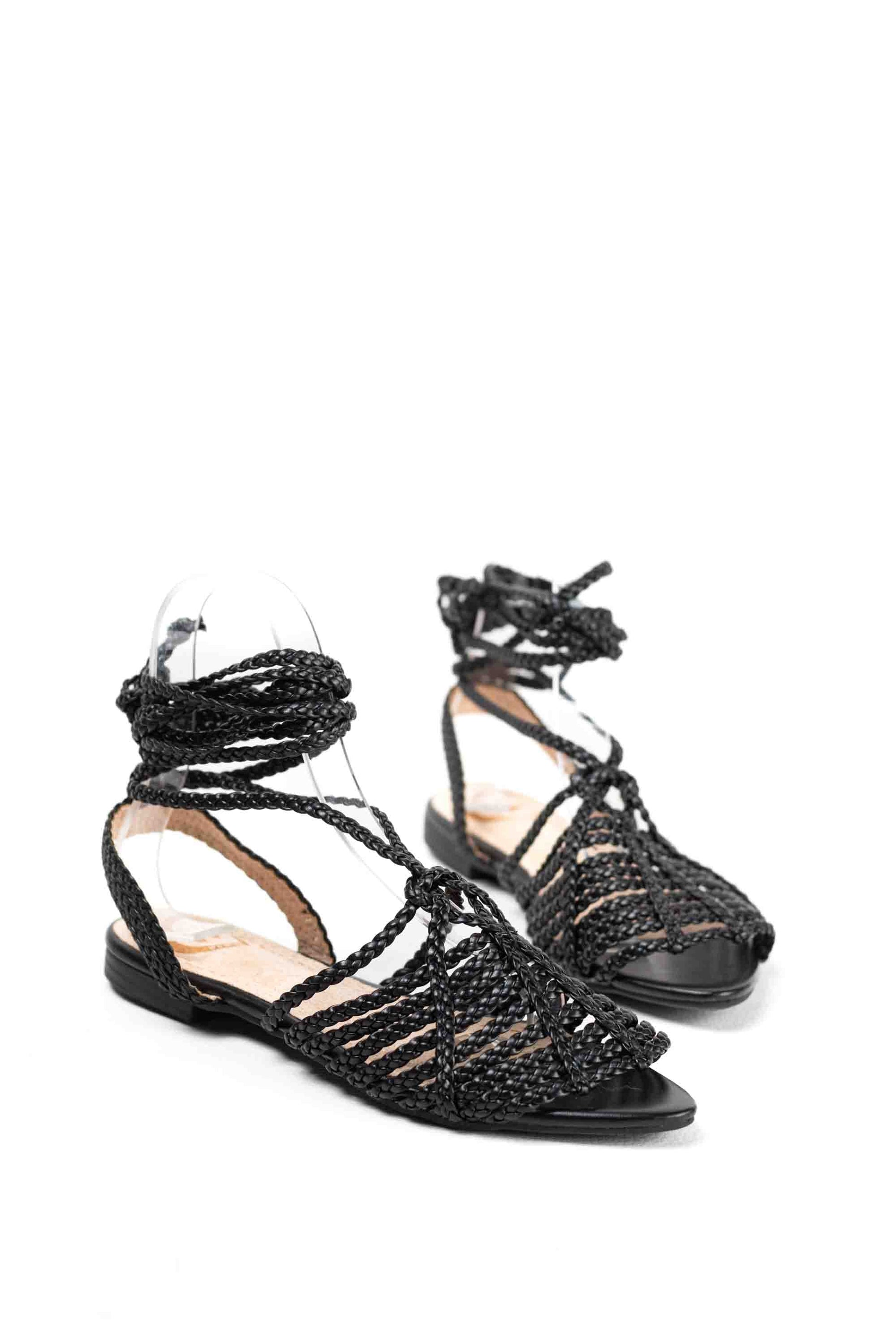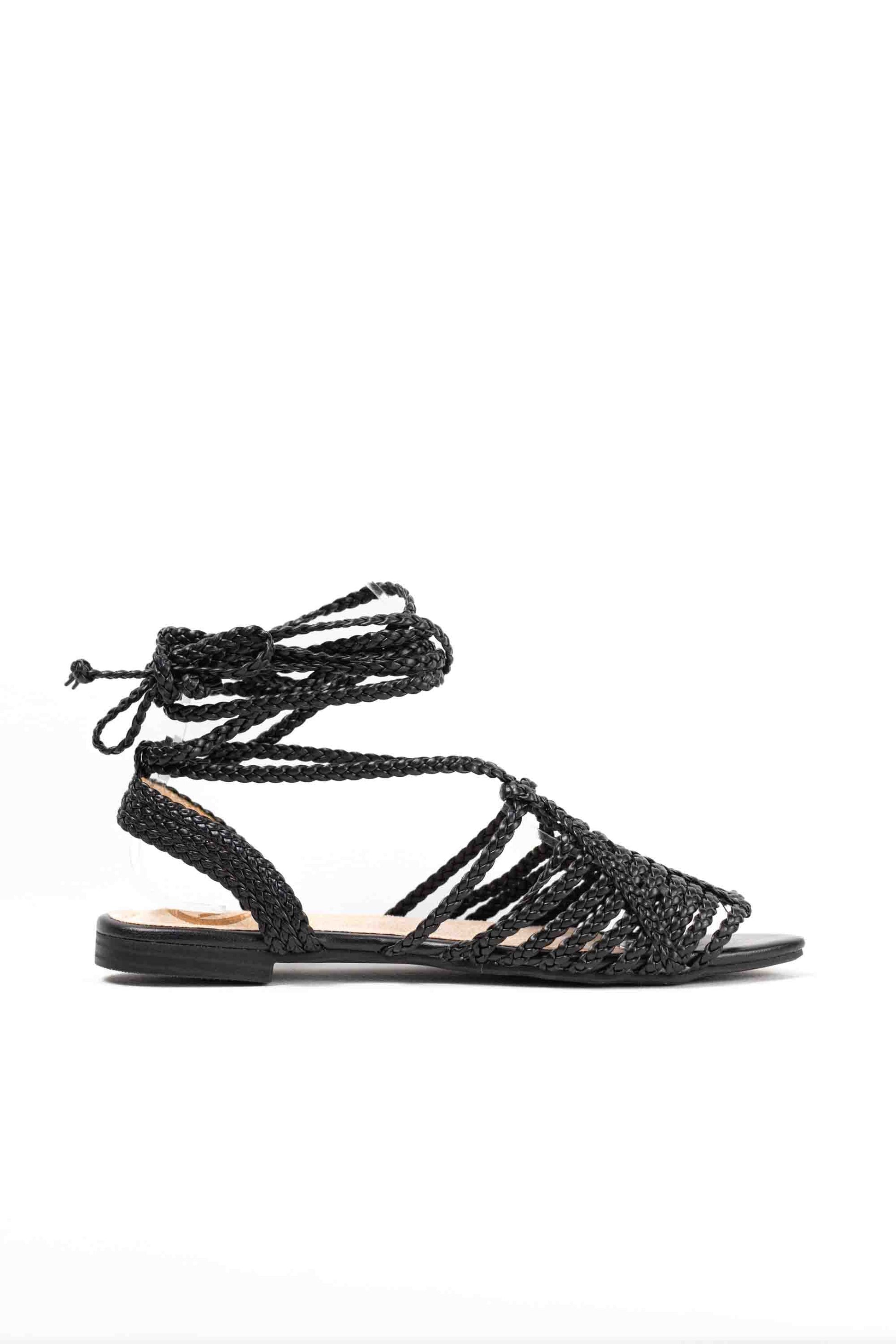 Sandalias doradas tiras trenzadas con cintas para mujer con suela plana
