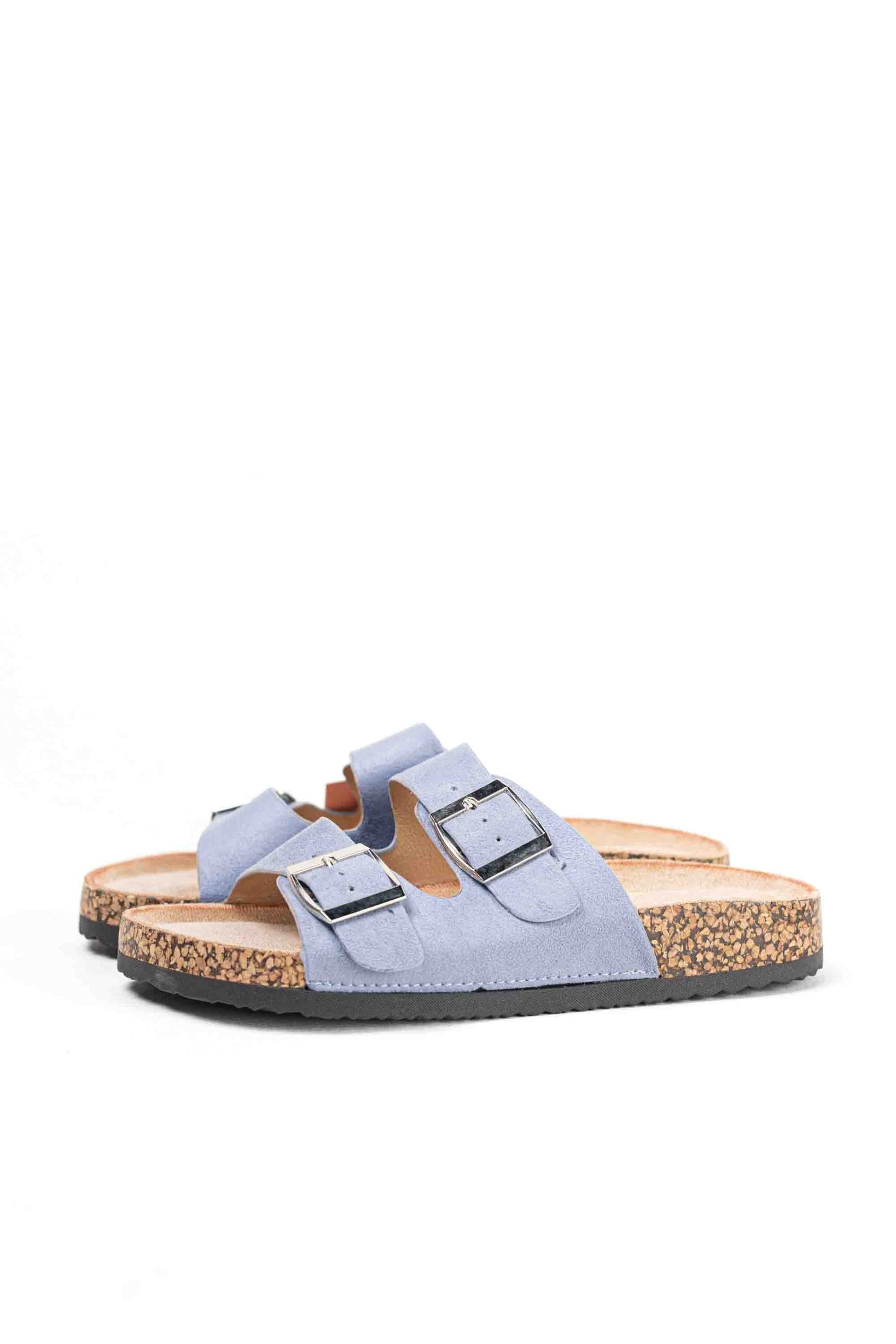 Sandalias mujer planas con doble hebilla metálica con suela corcho