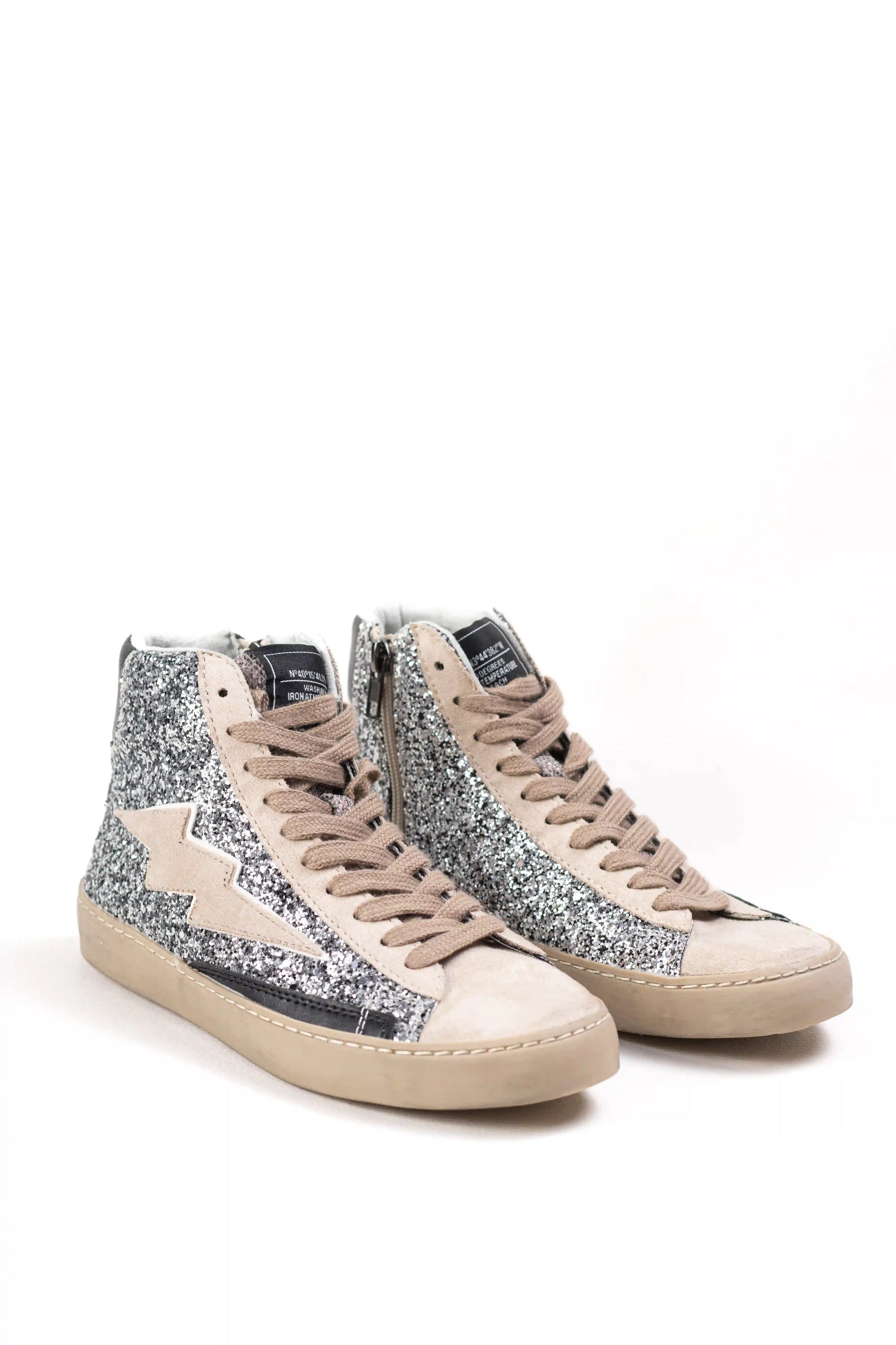 Zapatillas altas con glitter, detalle rayo lateral y suela de goma