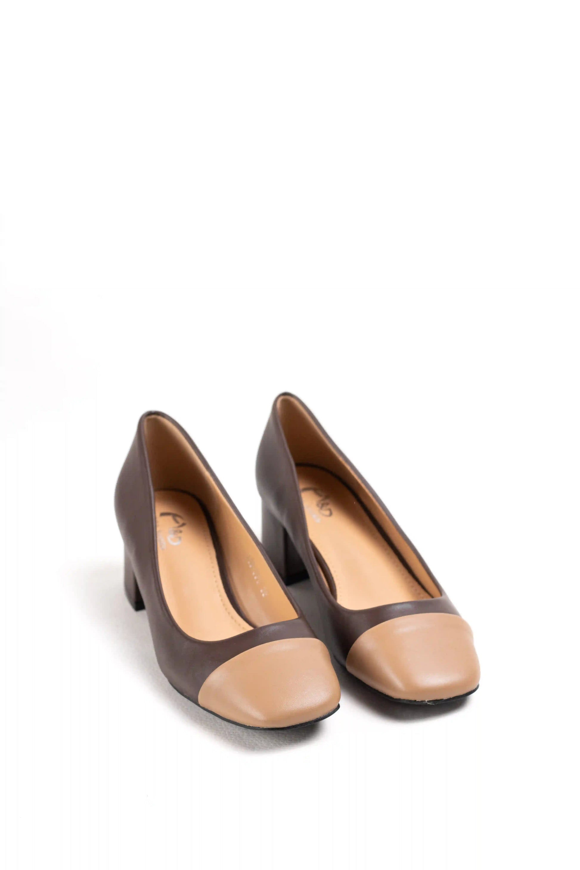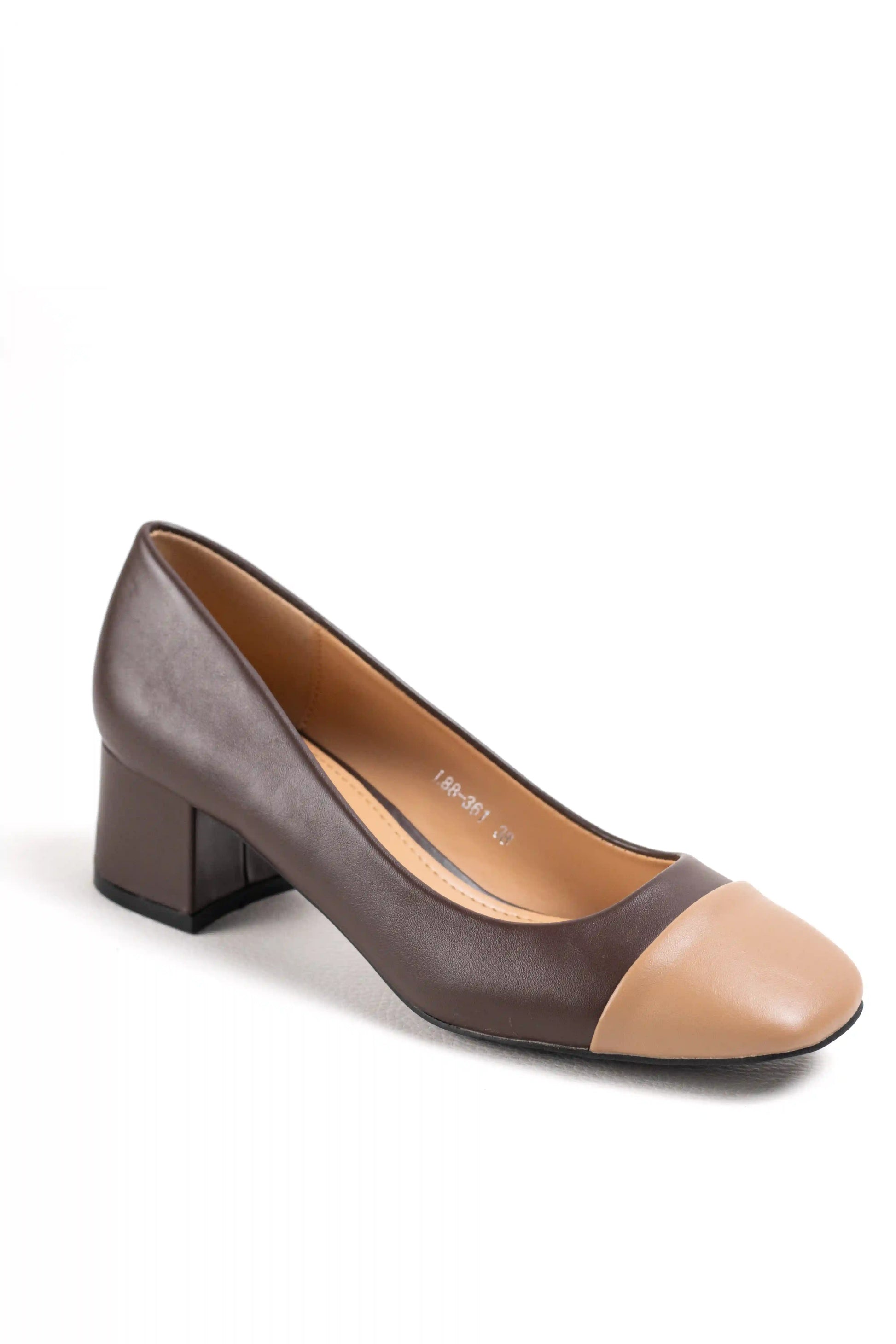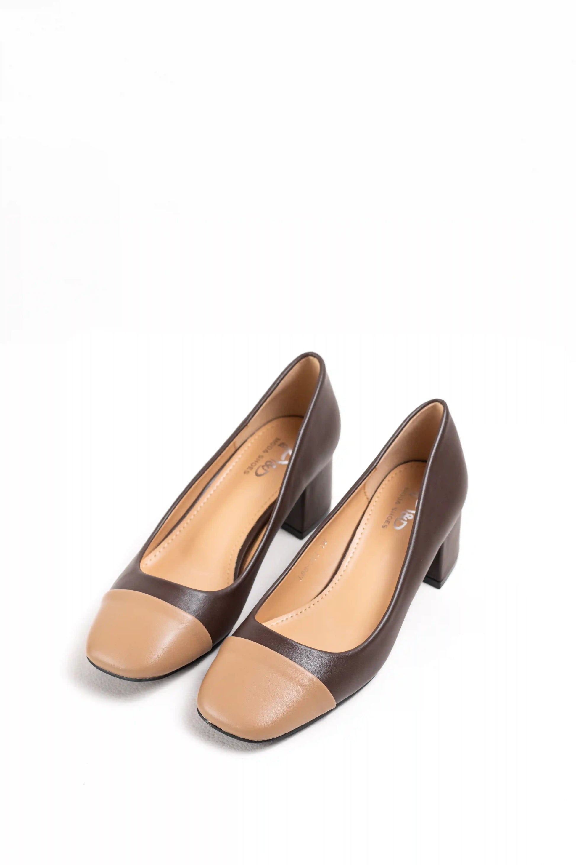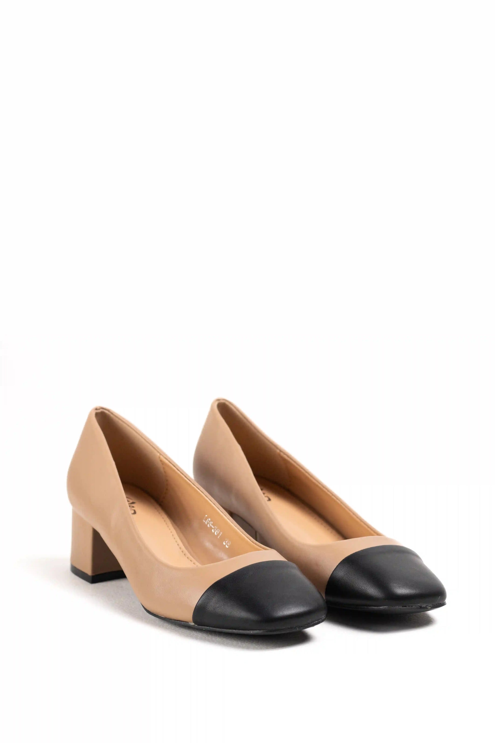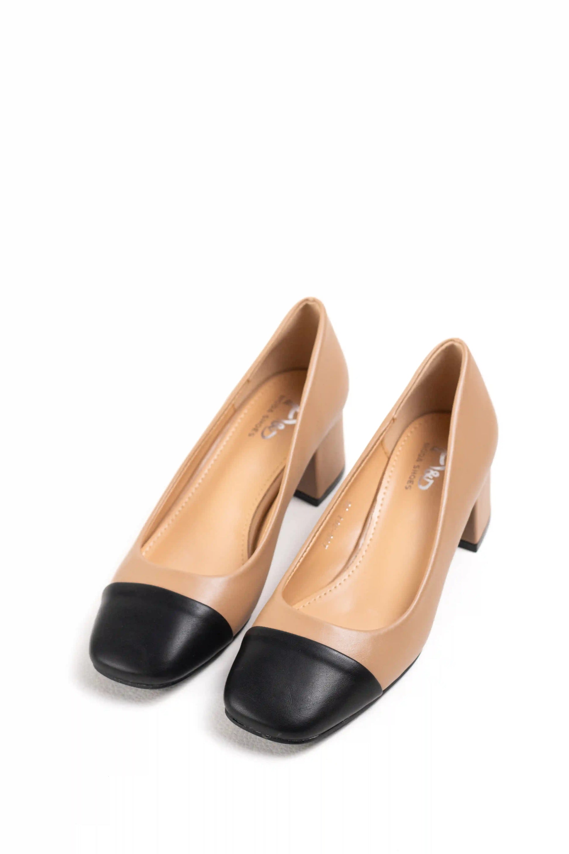 Zapatos de Salón Bicolor Nude y Negro, Punta Cuadrada y Tacón Bloque Medio